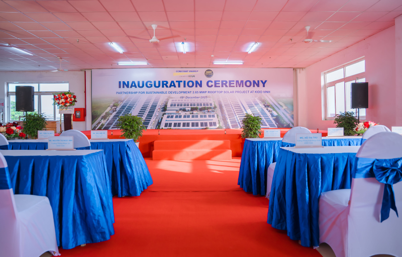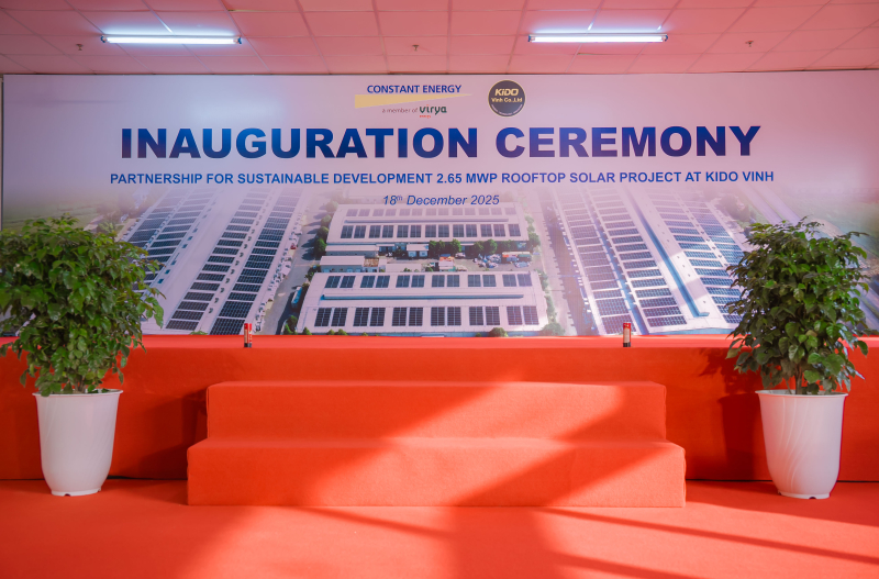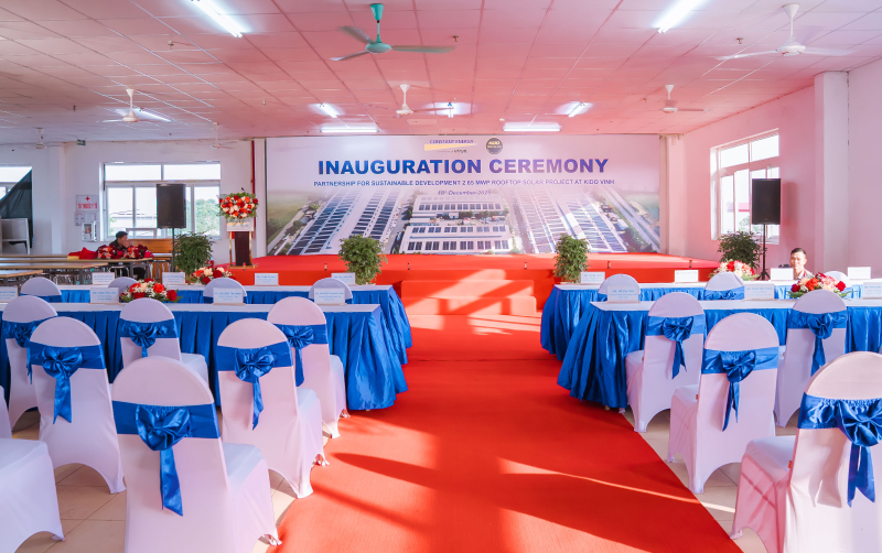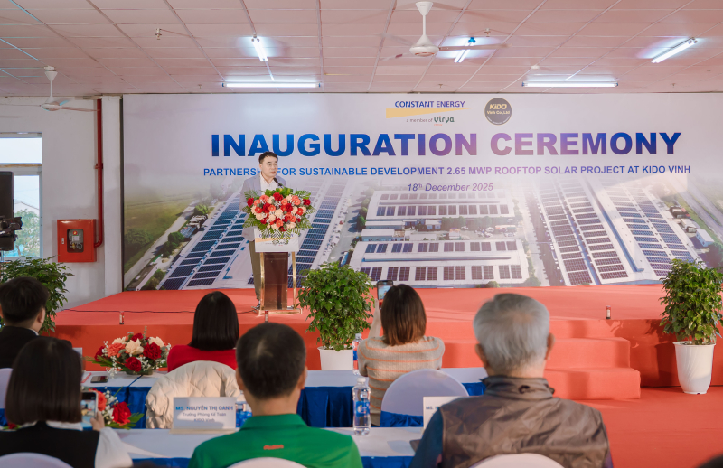 Sáng 18/12/2025, Lễ khánh thành “Dự án điện mặt trời mái nhà Công ty TNHH KIDO Vinh” đã được tổ chức thành công trong không khí trang trọng và chuyên nghiệp, đánh dấu bước khởi đầu cho quá trình vận hành dự án năng lượng xanh tại doanh nghiệp.