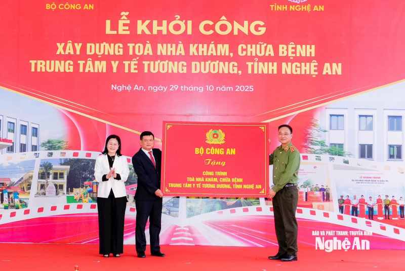 Sáng 29/10, tại xã Tương Dương, Bộ Công an phối hợp UBND tỉnh Nghệ An long trọng tổ chức lễ khởi công xây dựng công trình tòa nhà khám, chữa bệnh Trung tâm Y tế Tương Dương.