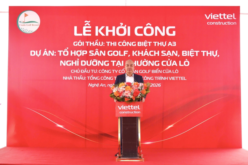 Sáng ngày 08/01/2026, Viettel Construction Nghệ An chính thức khởi công gói thầu thi công 15 căn Biệt thự A3 thuộc Dự án Tổ hợp Sân Golf – Khách sạn – Biệt thự – Nghỉ dưỡng tại Phường Cửa Lò, tỉnh Nghệ An với giá trị hơn 50 tỷ đồng.